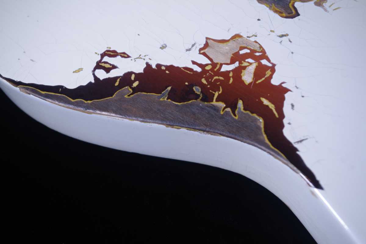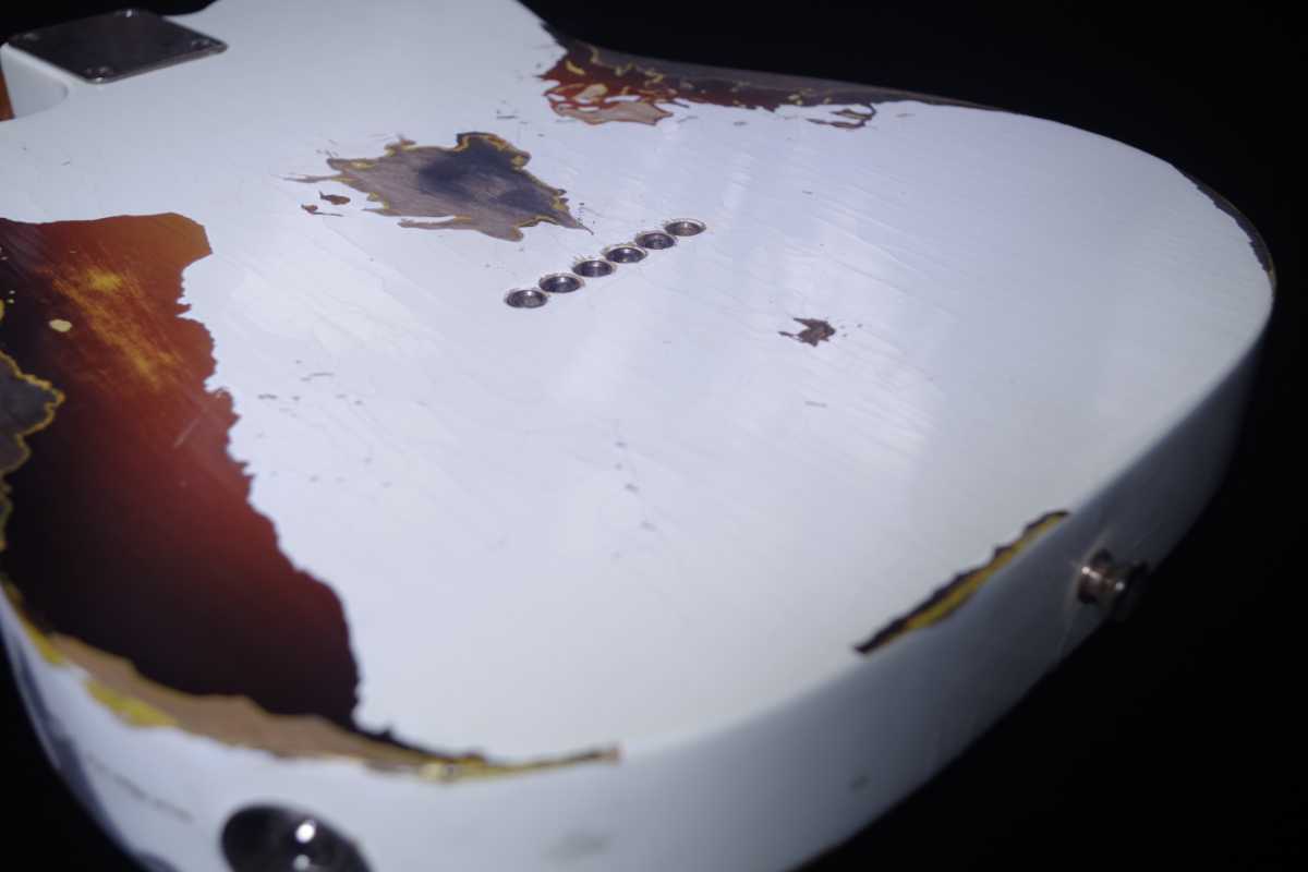 クリアにカラーを混ぜて飴色を再現するのではなく、特殊な方法でビンテージならではのネックの飴色を再現しました。