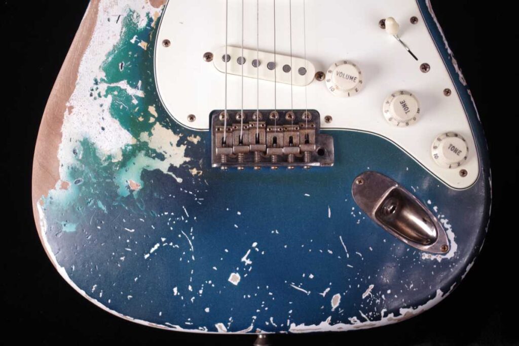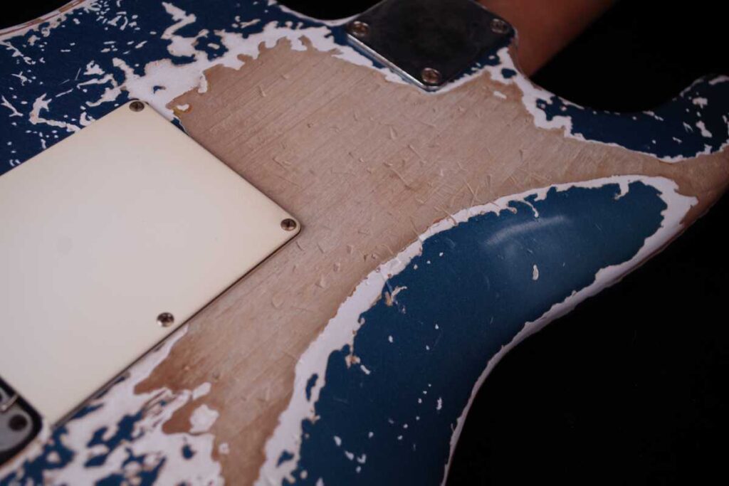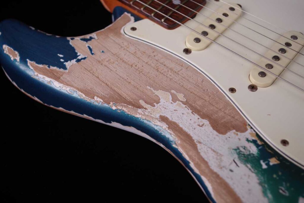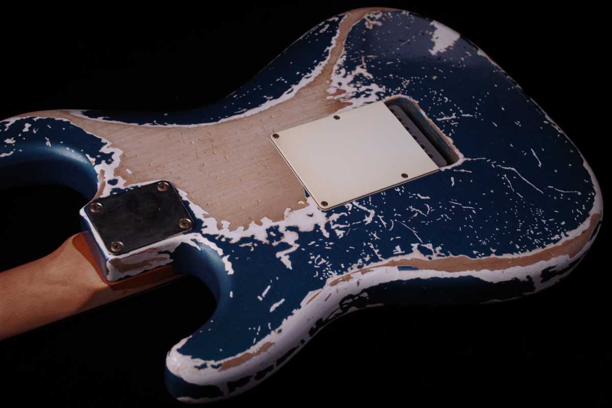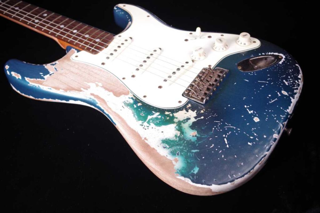 東京スカパラダイスオーケストラのギタリスト 加藤隆志のフェンダーシグネイチャーギターTAKASHI KATO STRATOCASTER®のネックリフィニッシュとパーツのビンテージ加工、及び