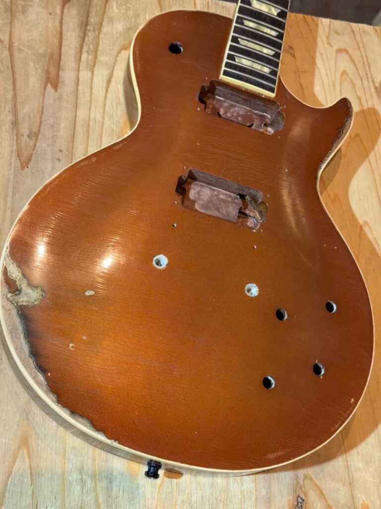 今回は 2023年製 Gibson Custom Shop Goldtop(過去にリフィニッシュ歴あり) をベースに、トップ面のみを対象として、わざとらしくないヴィンテージ感へ仕上げました。