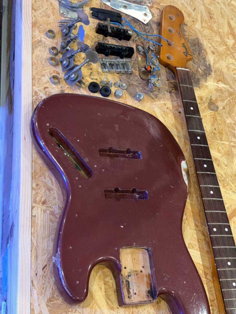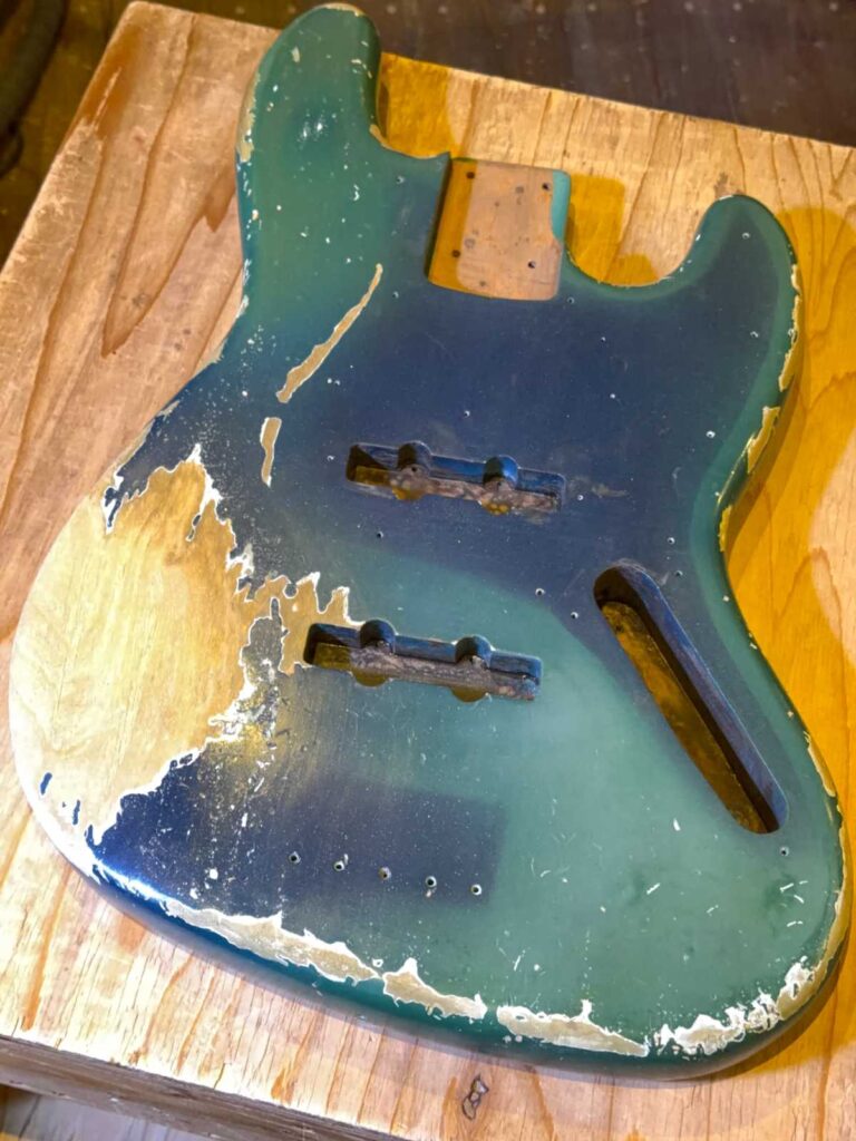 今回は Fender Jazz Bass のリフィニッシュ&ヘヴィーレリックを、Master Build 仕様として製作しました。